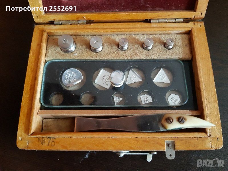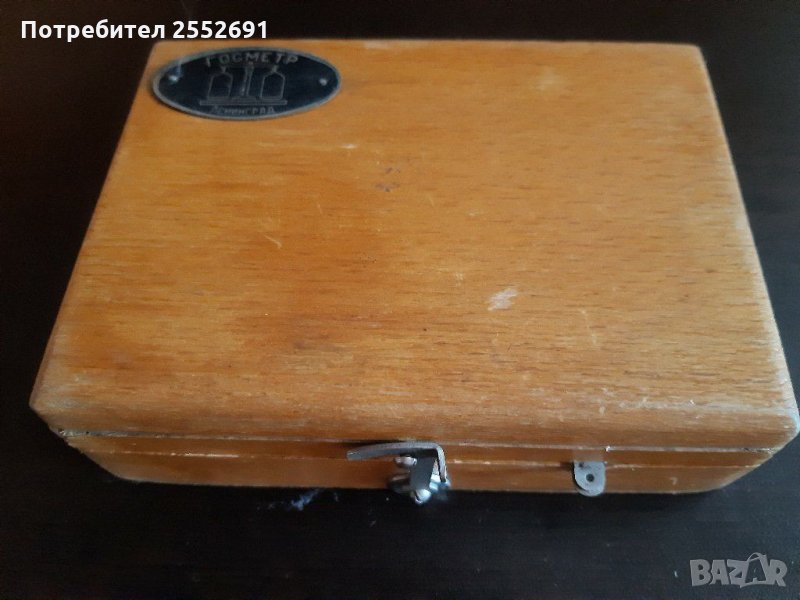 Комплект теглилки в дървена кутия до 10 гр. Производство- ГОСМЕТР- Ленинград. Размери- 12/9/3,5см.