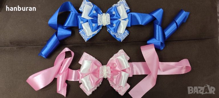 Украсителна панделка за пелена за изписване на бебе. Налични са два цвята - синьо и розово. Цената за брой е 19лв.