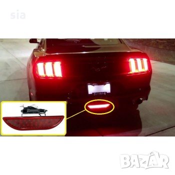 Универсален трети стоп 2 в 1 в стил Ford Mustang. Има възможност за свързване като допълнително подпомагане на светлините за мъгла (постоянно светеща ярко червена светлина). Когато е свързан към спирачките на автомобила и работи в режим на трети стоп, ярко червената светлина премигва за по-лесно привличане на вниманието на задния водач, с цел избягване на произшествия.
