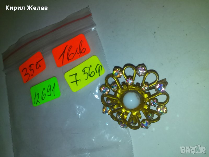 АРТ ДЕКО БРОНЗОВА ПОЗЛАТЕНА БРОШКА с ПЕРЛИ и БОХЕМСКИ КРИСТАЛИ 12691