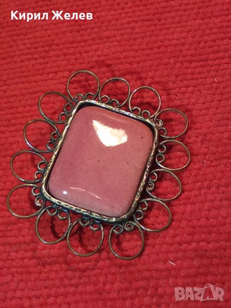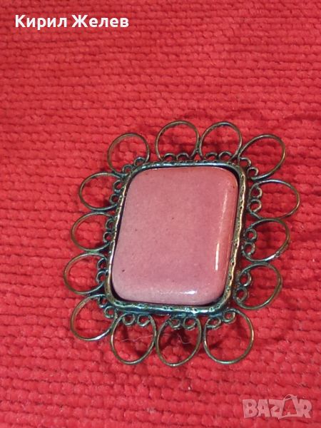 БРОНЗОВА ПОСРЕБРЕНА БРОШКА с ЕМАЙЛ КЕРАМИКА АРТ РЪЧНА ИЗРАБОТКА СТАРА 11878