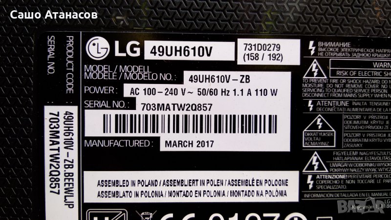 LG 49UH610V счупена матрица ,LGP49LIU-16CH1 ,EAX66943504(1.0) ,6870C-0647A ,TWFM-B006D ,EAD63787304