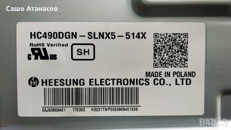 Захранване: EAX66923201(1.4) / LGP49LIU-16CH1 - 85лв.