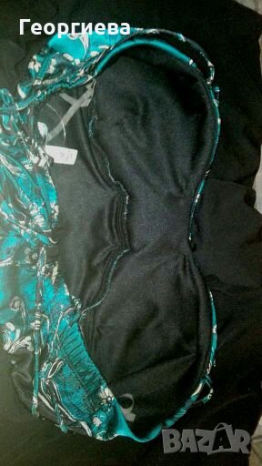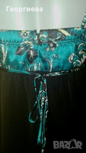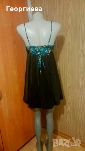 Много кокетна рокличка със сатенена цветна горна част и плътен еластичен черен полиестер надолу.Има добра еластичност и презрамките се регулират.Бюстоето е с вградени подплънки и на практика роклята може да се носи и без