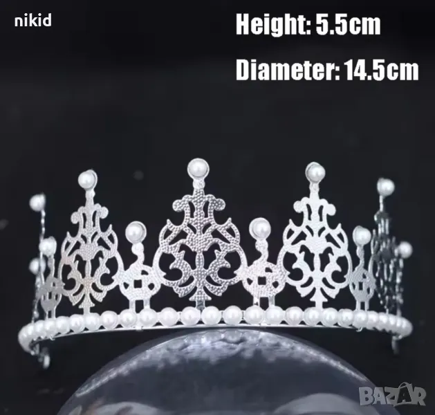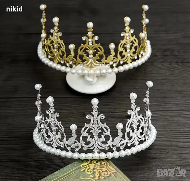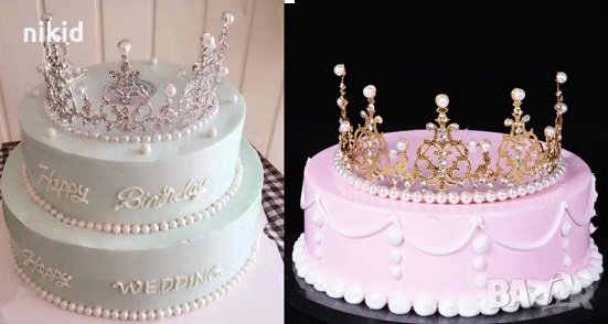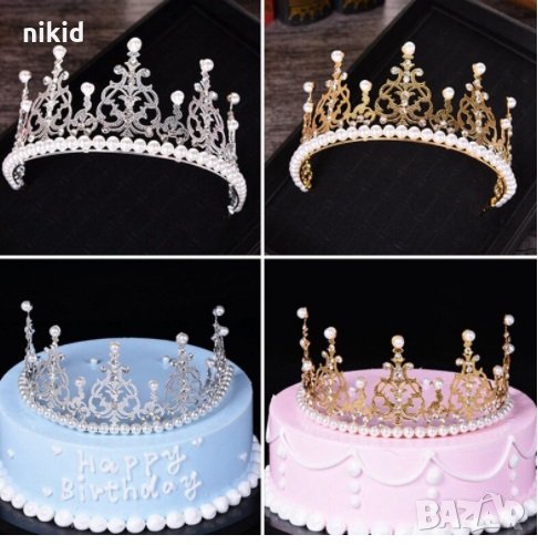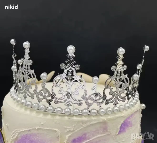 островърха Корона Тиара метална с перли за украса декор на торта парти → Обява 29848334
