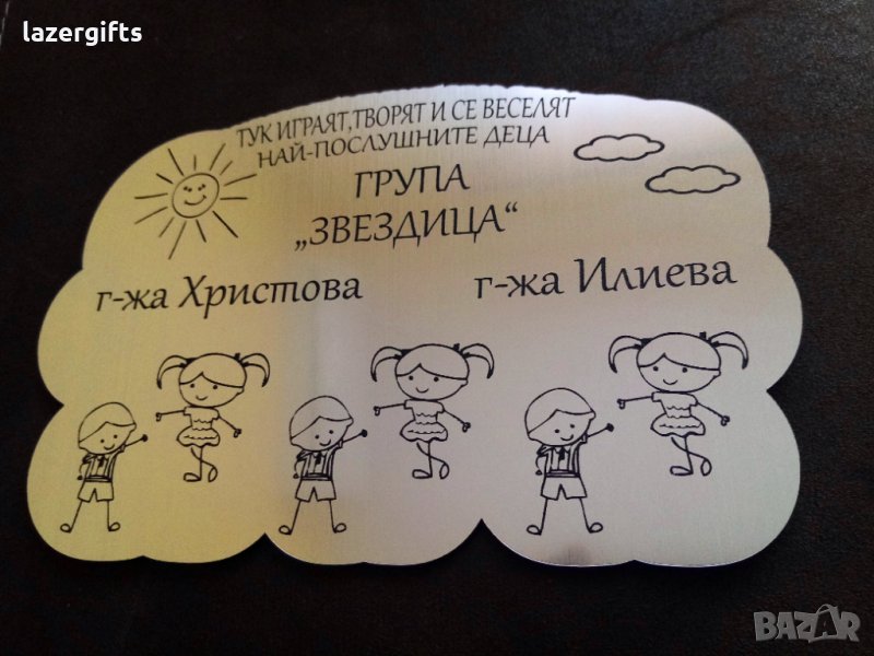 УНИКАЛНА лазерно гравирана ТАБЕЛА ЗА ВРАТА ЗА ДЕТСКА ГРАДИНА. Надпис по ваш текст :)