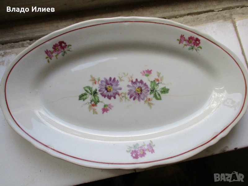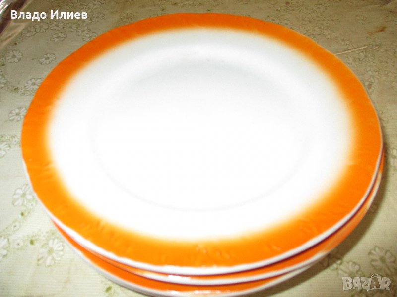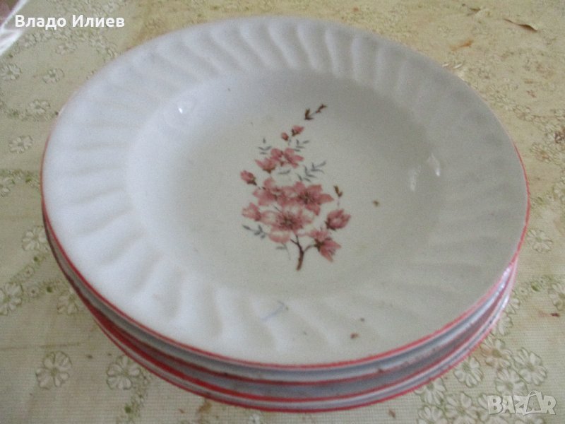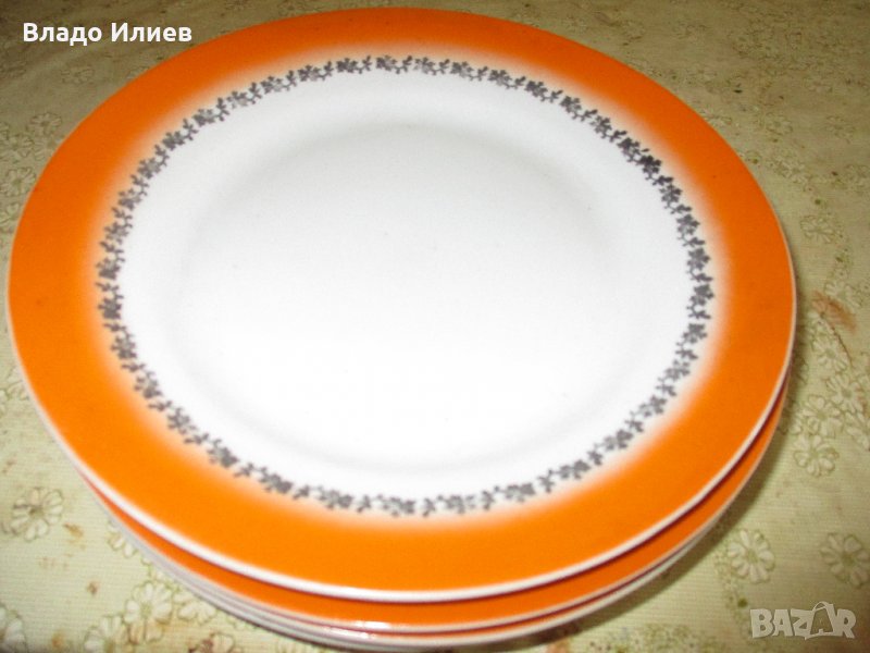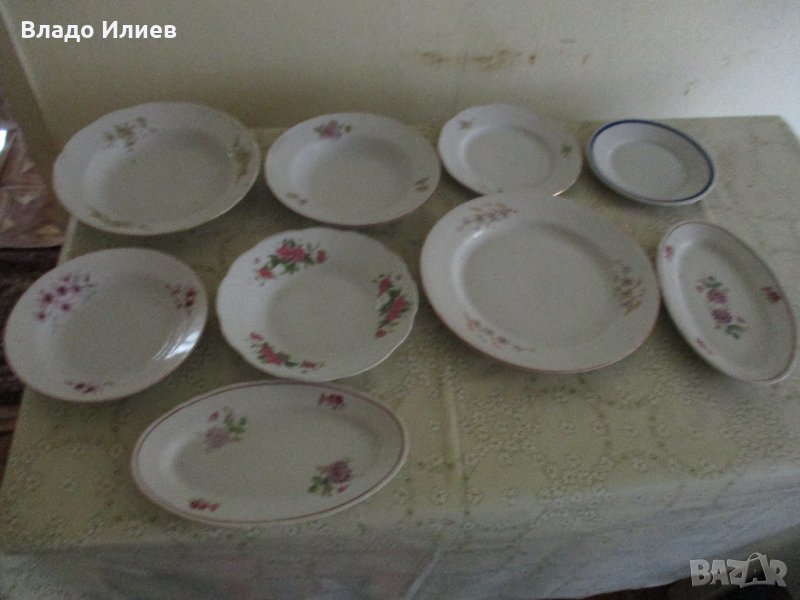 Чиниите и паниците са съвсем нови,с отлично качество.Произведени са отдавна,когато качествения контрол е бил на много по-високо ниво.С различен размер и шарки са.Нямат никакви дефекти.Чиниите на 9-та снимка/със златният кант/ са с размери:диаметър 18,8 сантиметра и 2,5 см дълбочина.Някои от чиниите на първата снимка /общата за всички чинии/ са продадени.Налични са тези на снимките,където те са представени поотделно.Размери на овалните чинии- и двете са с оценка К-качество над световно равнище -еднакви са -24 на 14 и половина сантиметра-на 15,16 и 17-та снимка са заснети .