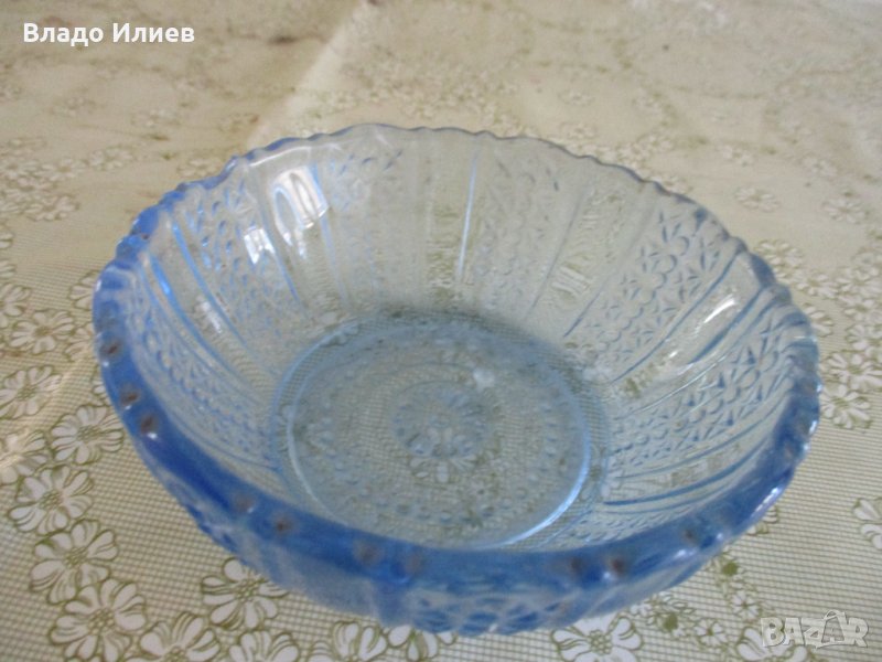 стъклени сини съдове:малки чинии- 5 броя, големи чинии/плата,подноси/- 3 броя,