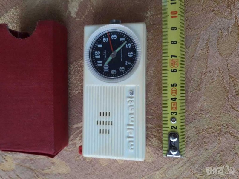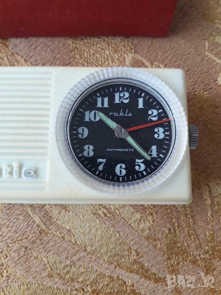 Стар туристически механичен часовник -Ruhla GDR.състояние видно на снимките запазен за възрастта си,За звънене му трябва батерия от 1.5 волта,механиката функционира.