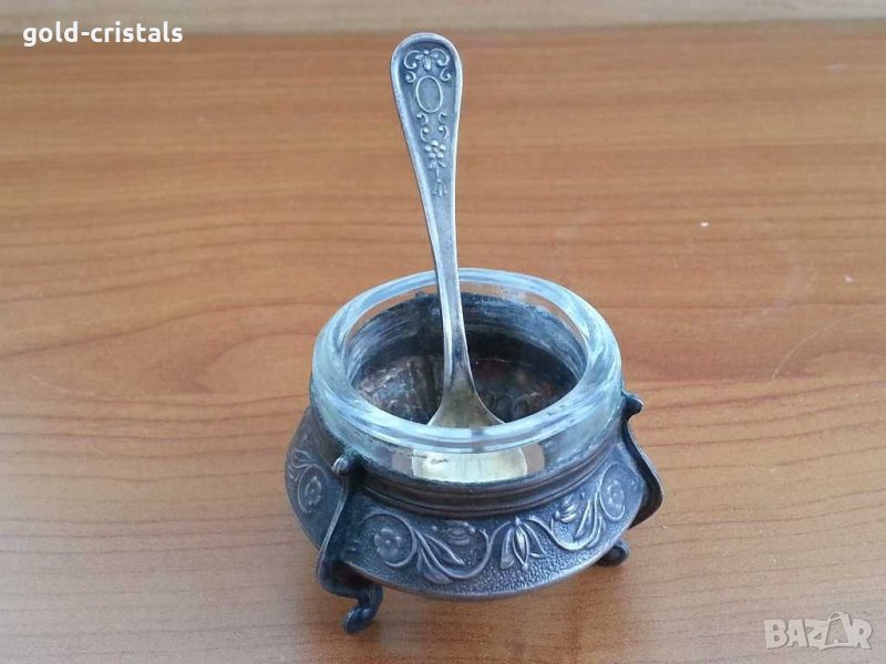 Руски посребрен съд за хайвер с посребрена лъжичка -49лв съд за хайвер с неръждаема лъжичка -39лв посребрени маркиран юммет мнц мелхиор руско сребро съветски ссср ретро арт декор винтидж колекция стари антикварни предмети обзавеждане за дома и семейството подходящи за подарък за ценители и колекционери