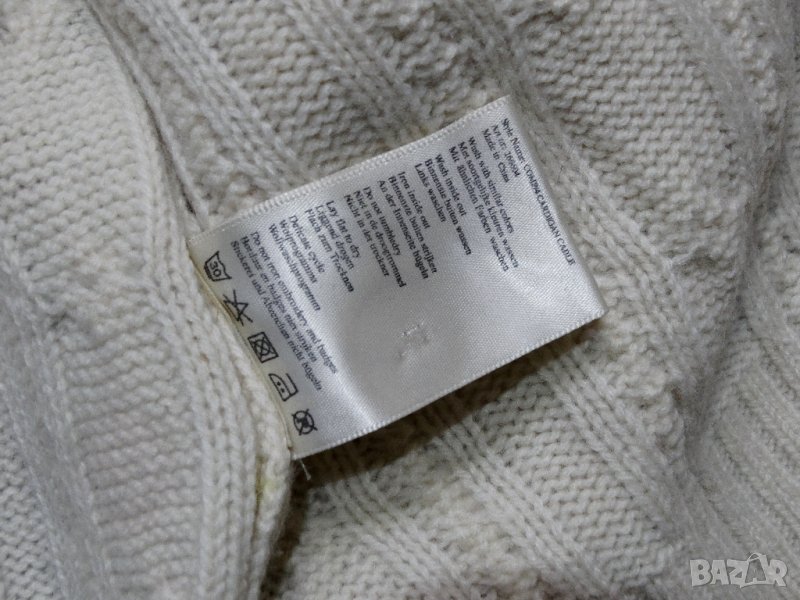 Жилетката е като нова, цвят екрю с дължина-74см, рамена-44см, подмишници-53см, ръкав-70см. Състав: 80% Lambswool агнешка вълна и 20% полиамид