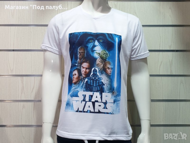 Страхотна нова мъжка тениска в бял цвят с трансферен печат геройте от STAR WARS, Междузвездни войни - SITH LORD PALPATINE