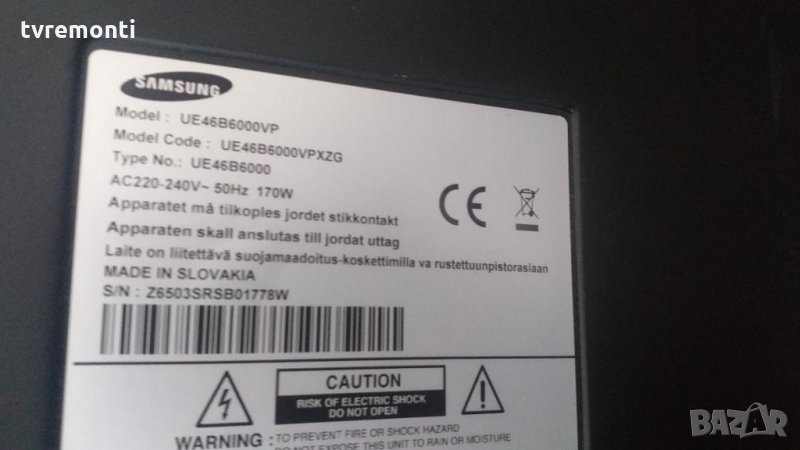 POWER SUPPLY BN44-00269B MAINBOARD BN94-02761P BN41-01190C Samsung UЕ46B6000W борда е гарантирано работещ Демонтиран от уред със счупен дисплей LTF460HF08 тесвана от нашия техник