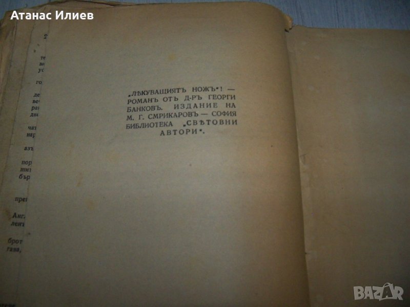 "Лекуващият нож" роман от д-р Георги Банков 1944г.