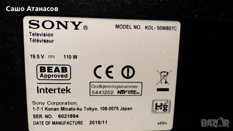 SONY KDL-50W807C с счупена матрица ,1-893-880-21 ,15STM6S-ABC02 REV: 1.0 ,T550HVN08.2 ,1-894-388-11
