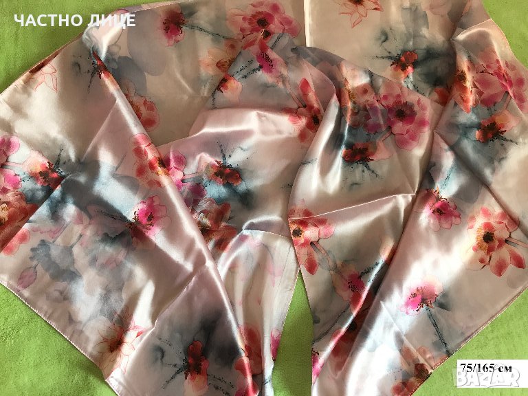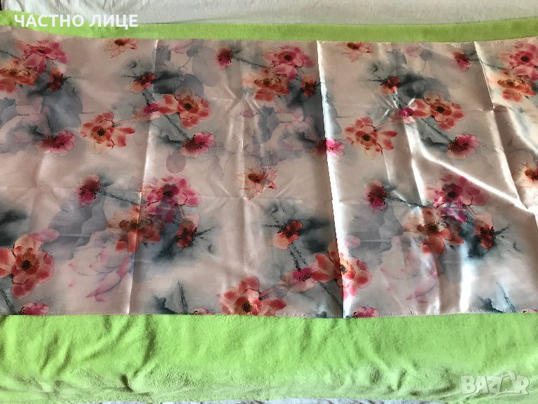 10/ 100% коприна, оригинален, закупен от Китай в розово с красиви цветя - Ш/Д – 75/165 см – 99 лв