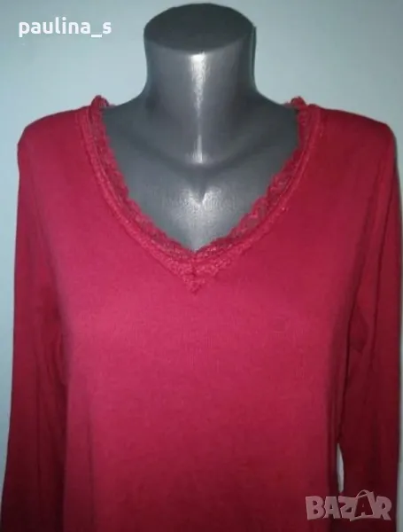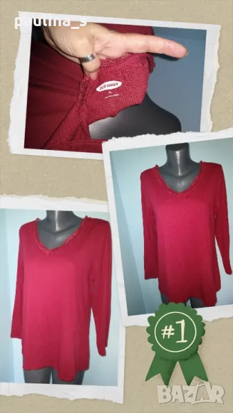 3. Колаж / "Old navy" by Gap. Цената е крайна 24,99лв. Една бройка, нова без дефекти и етикет. Еластична блуза тип туника туника с дантела в цвят Бордо. С V образно деколте, с декорации от дантела, от много еластична материя - рипс - памук, вискоза и ликра, 7/8 ръкави. Моделът се вижда добре.