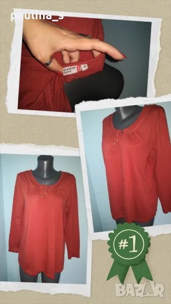 4. Колаж / XL / 4XL - "Outfit" classic. Цената е крайна 22,99лв. Една бройка, нова без дефекти и етикет. Дизайнерска туника на Дона Каран, серия аутфит, с набор на деколтето. Материята е памучно трико, хипоалергична и покрива няколко размера. Моделът се вижда добре, с обло деколте и връзки. Цветът е брик червен.