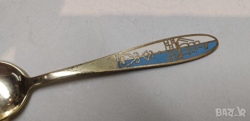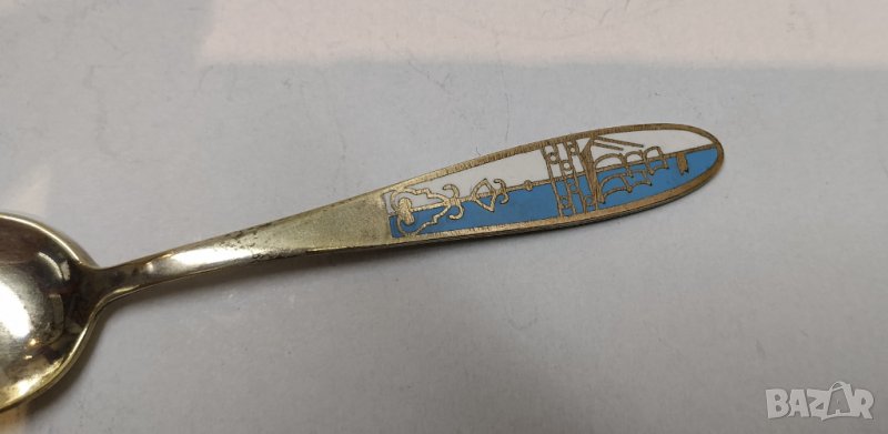 Стара сребърна Руска лъжичка с позлата и емайл.