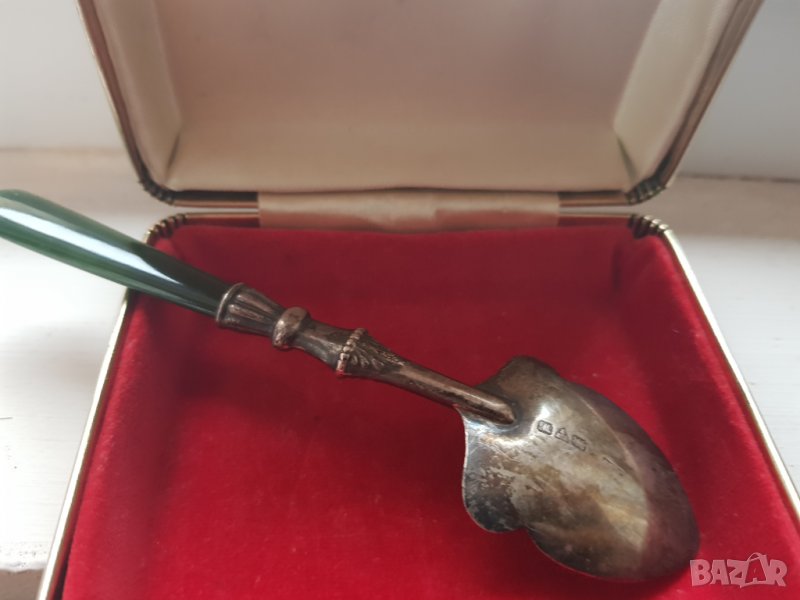 Старинно ръчно изработена сребърна лъжичка с естествен камък.