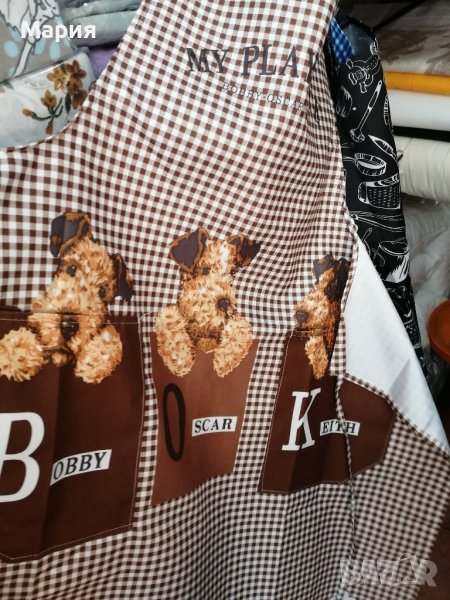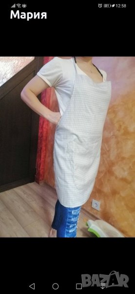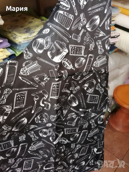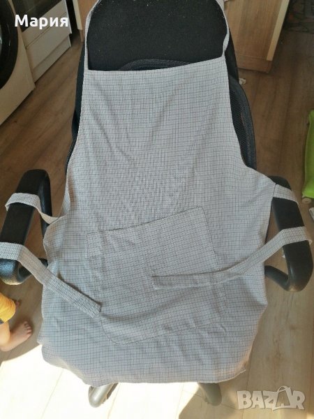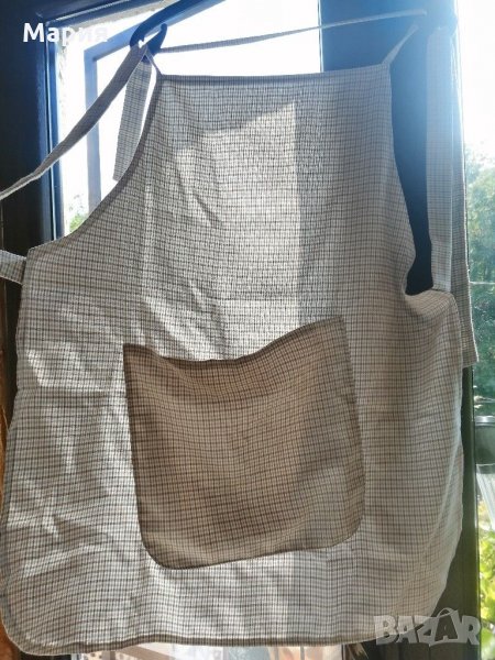 Нова домакинска престилка от плат с голям джоб. Удобна и практична, пази дрехите при готвене и чистене.