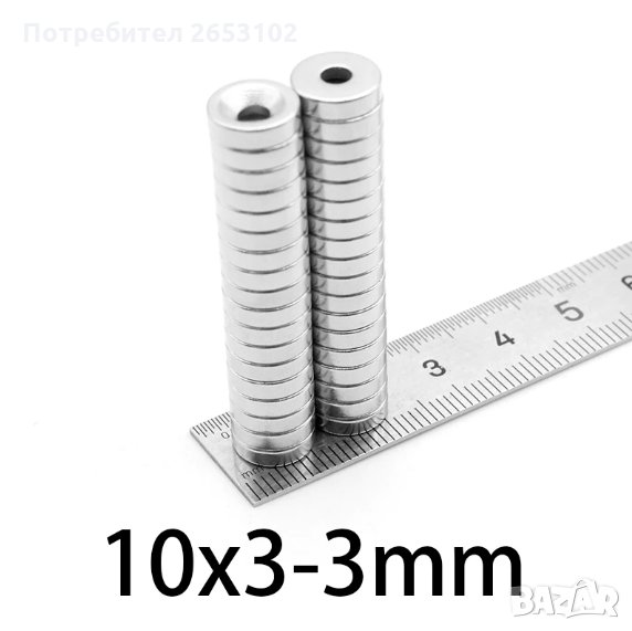 10бр. Неодимови магнити с отвор 10мм.x3мм./отвор 3мм. → Обява 29883930