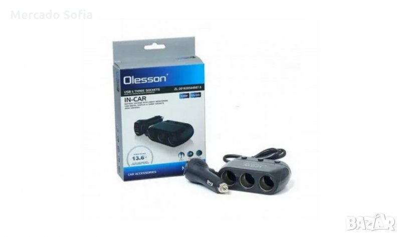 Разклонител за запалка 3 в 1, 3 гнезда, USB, вграден ВОЛТМЕТЪР