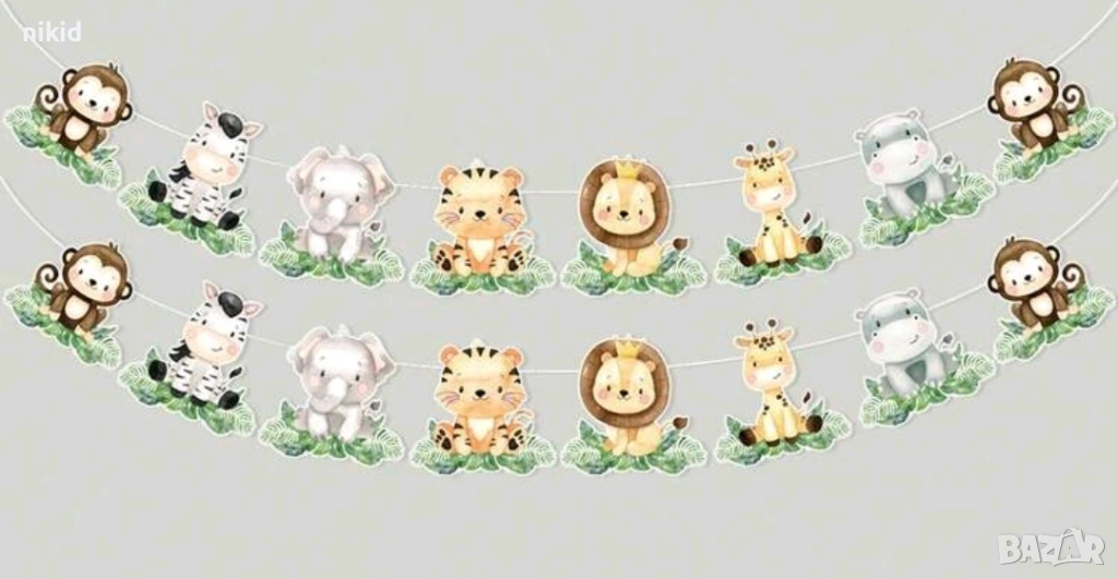 Сафари Джунгла Зоо Диви животни Картонен банер парти гирлянд декор флаг рожден ден → Обява 29885985
