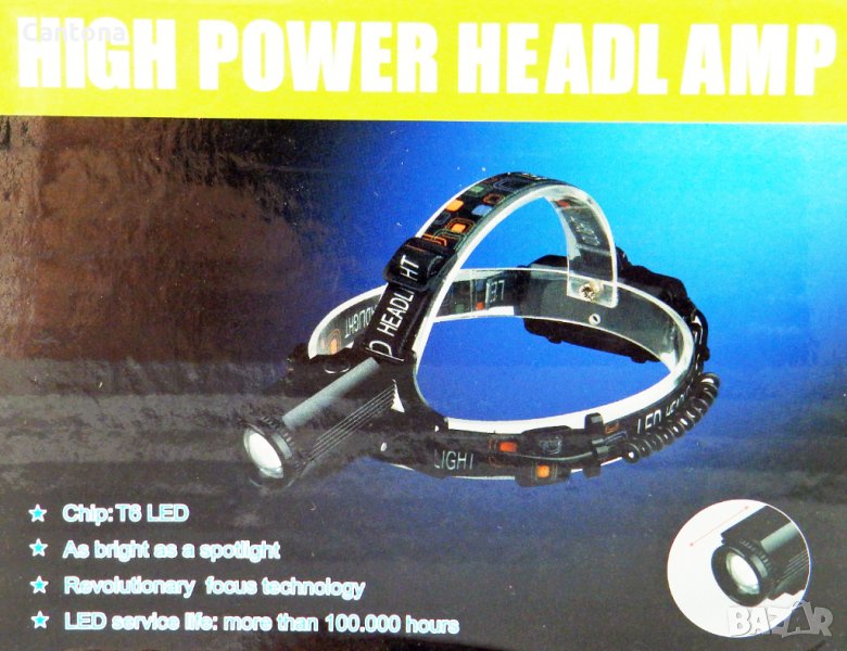 Извънредно мощна челна лампа с два литиево-йонни акумулатора.