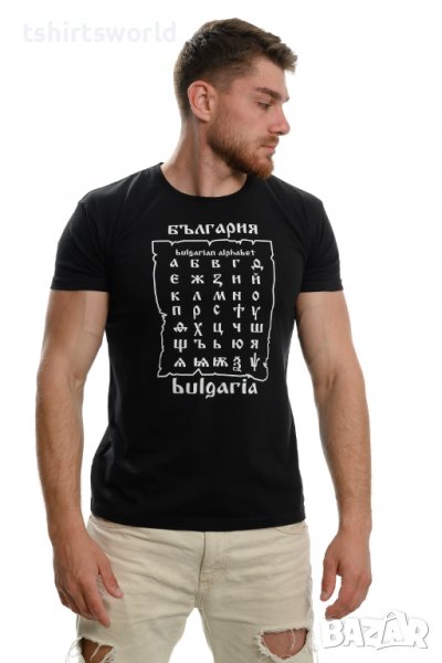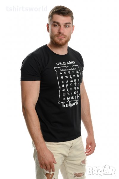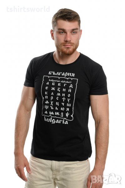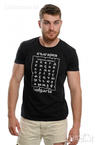 Нова мъжка черна тениска с трансферен печат България, Азбука