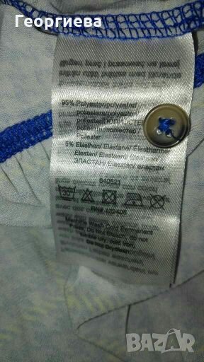 Разкошна рокля в нюансите на синьото и жълт акцент.Платът е еластичен полиестер, който не прозира и не се мачка!Цената е ниска само, защото липсва хартиения етикет.Роклята може да се носи и като сукман - с боди, или тънка блузка.Презрамките се тегулират.