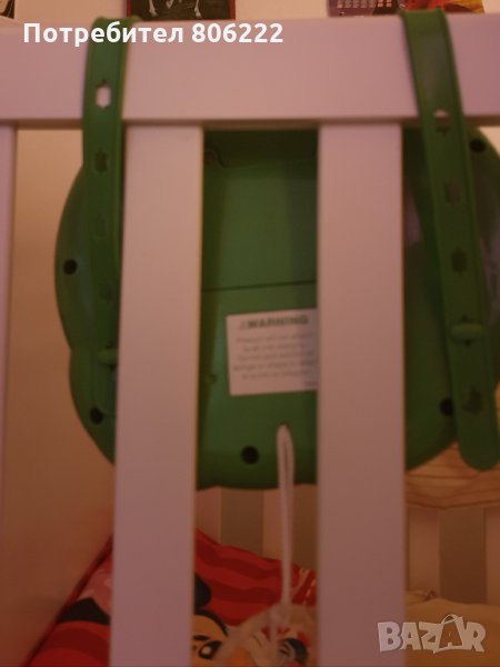 Може да се закача за кошара или да се използва поставена на земята, като музикална играчка. Има светлини , приспиващи, и музики с такова действие. От сериято рейн форест, с звуци и мелодии. Включва се с натиск на папагалчето, а животните се движат. На нас наистина ни действаше приспивно.