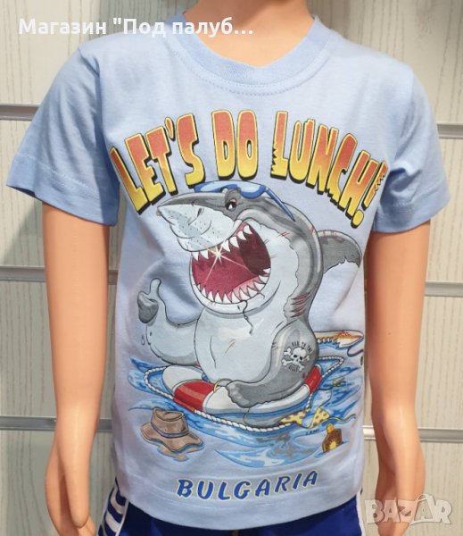 Нова детска тениска с трансферен печат Акула, LET'S DO LUNCH