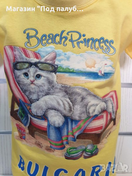 Страхотна нова детска тениска в жълт цвят с трансферен печат Котенце, плажна принцеса. Тениската е изработена в България под марката PRINTEX от висококачествен 100% пениран памук, който запазва цялостта на материята и наситеността на цветовете дълго време. С удобна кройка, тениската е свободна и позволява максимален комфорт при носене. Професионално изработен висококачествен трансферен печат, устойчив на пране с години. Тениската може да се пере при температура до 40 градуса. Спокойно можем да гарантираме за качеството на изработката и ярките цветове на дизайна.