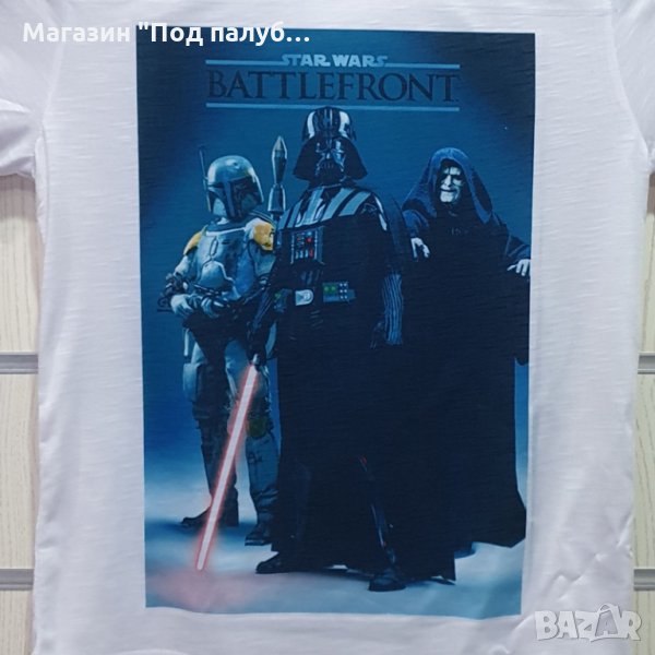 Страхотна нова детска тениска в бял цвят с трансферен печат STAR WARS Battlefront, Междузвездни войни. Тениската е изработена в България под марката PRINTEX от полиестер, който запазва цялостта на материята и наситеността на цветовете дълго време. С удобна кройка, тениската е свободна и позволява максимален комфорт при носене. Професионално изработен висококачествен трансферен печат, устойчив на пране с години. Тениската може да се пере при температура до 40 градуса. Спокойно можем да гарантираме за качеството на изработката и ярките цветове на дизайна.