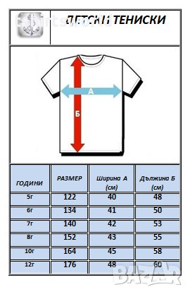 Таблица с размери в см е прикачена към снимките на продукта!!!