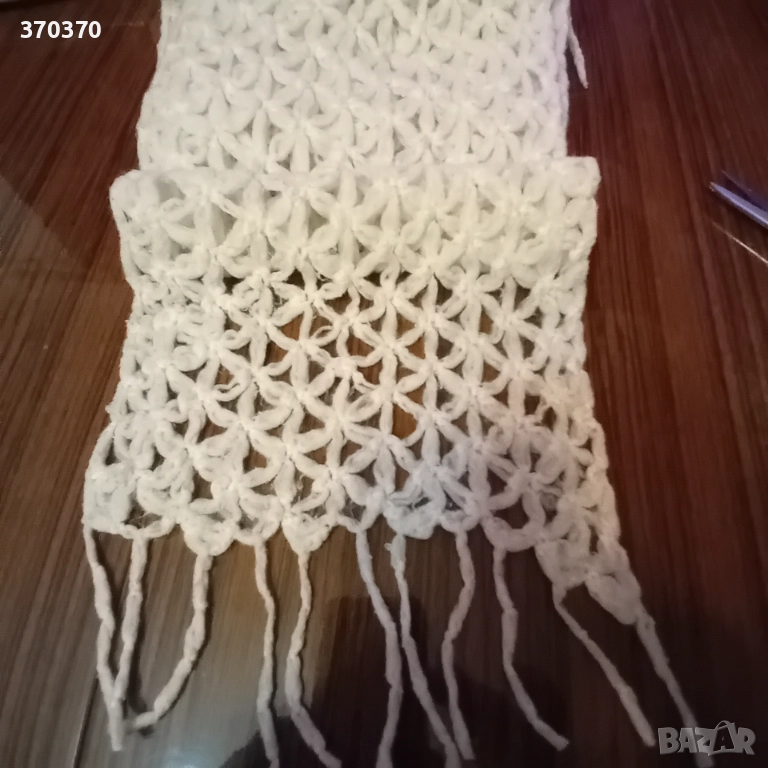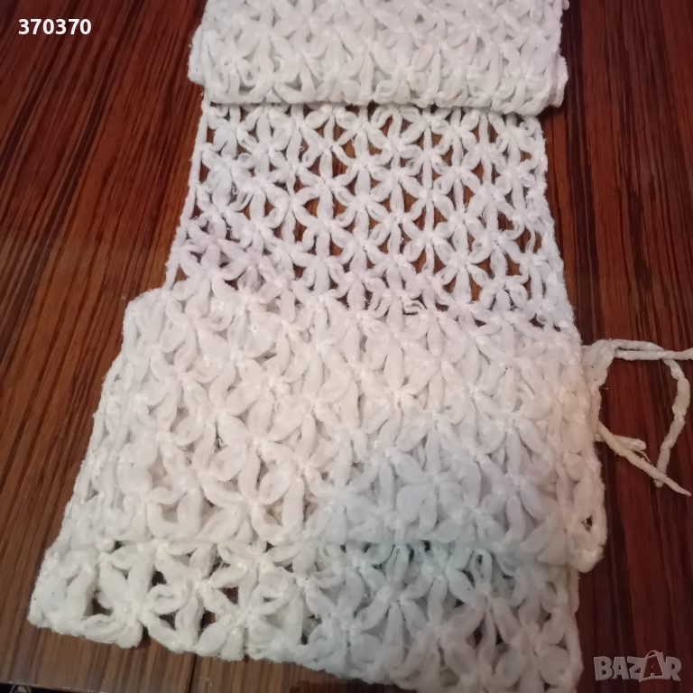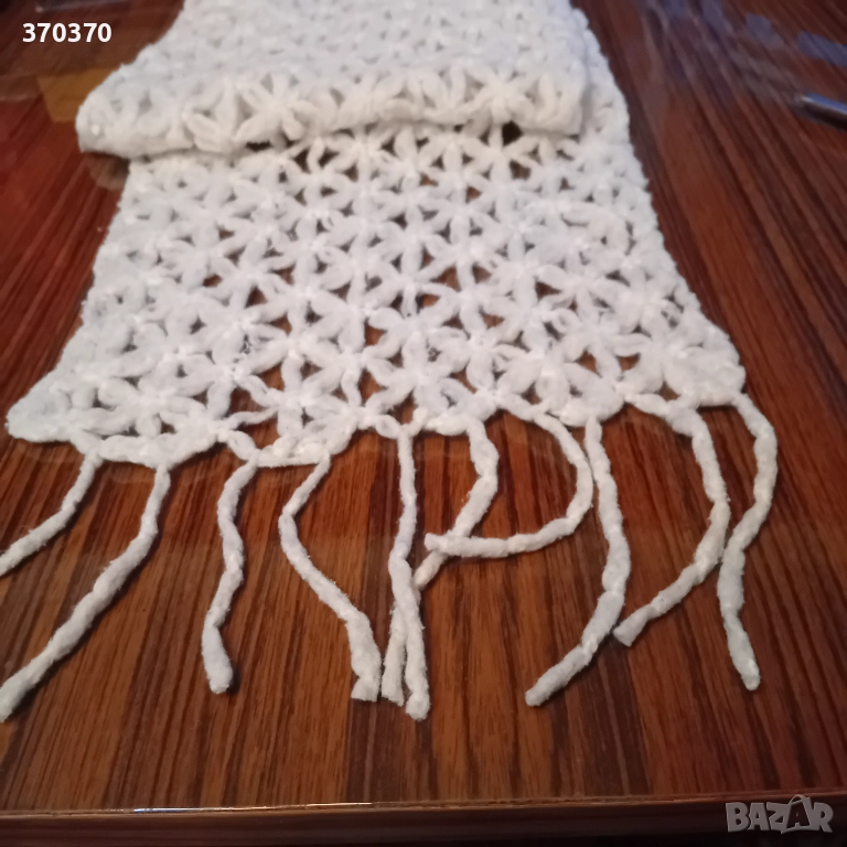 4. Красив, топъл и изключително пухкав зимен шал от снежно бяла прежда Предима с размери 168 см без ресните на 22 см ширина - използван запазен.