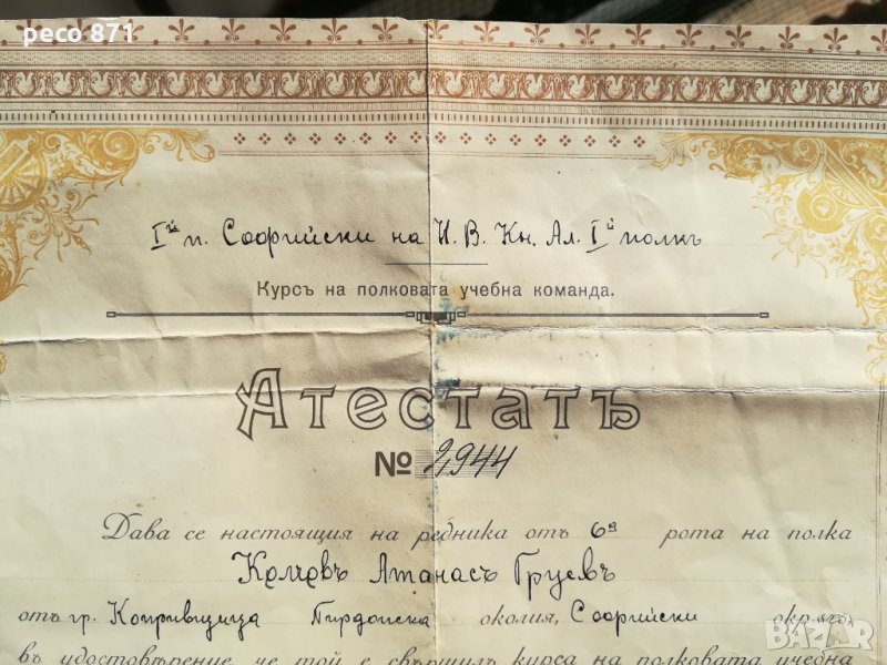 Атестат Първи пехотен софийски на Н.В. Княз Александър I пол, снимка 1 - Други ценни предмети - 29903633 Атестат Първи пехотен софийски на Н.В. Княз Александър I пол, снимка 2 - Други ценни предмети - 29903633 Атестат Първи пехотен софийски на Н.В. Княз Александър I пол, снимка 3 - Други ценни предмети - 29903633 Атестат Първи пехотен софийски на Н.В. Княз Александър I пол, снимка 4 - Други ценни предмети - 29903633 Атестат Първи пехотен софийски на Н.В. Княз Александър I пол, снимка 5 - Други ценни предмети - 29903633 Атестат Първи пехотен софийски на Н.В. Княз Александър I пол, снимка 6 - Други ценни предмети - 29903633 Атестат Първи пехотен софийски на Н.В. Княз Александър I пол, снимка 7 - Други ценни предмети - 29903633 1/7