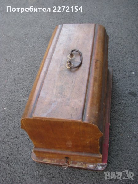 Британска от 80 години на 19 век,над 130 годишна,почти като нова,позлатата и никъде няма изтриване,порцеланова дръжка,дървеният куфар е с оригиналният си ключ,заключва се и се носи.Машината е в работещо състояние.Цялостна дължина с дървената основа 48см,само дължина на машината 30,5см.