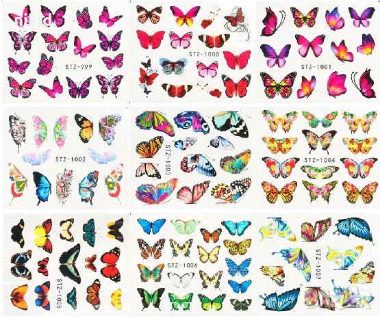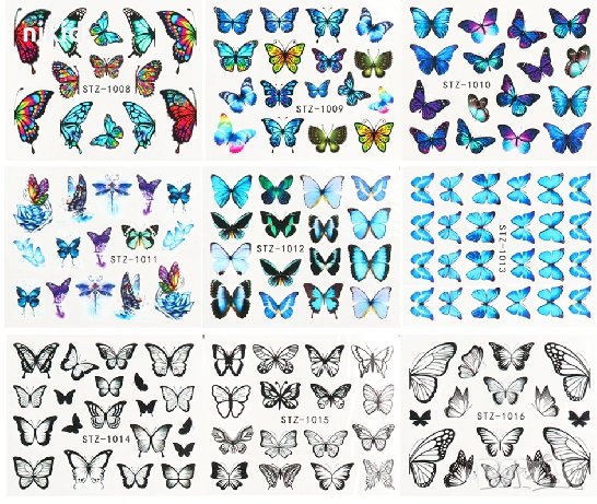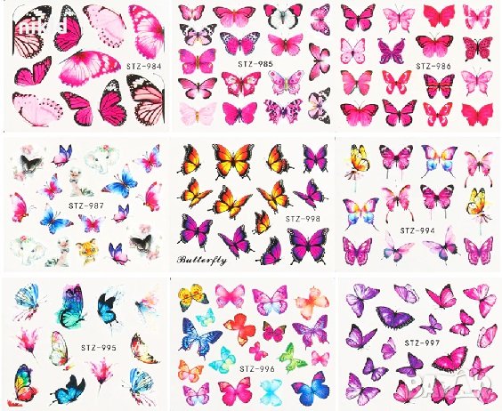 30 бр различни пеперуди ваденки слайдери за нокти маникюр → Обява 29905802
