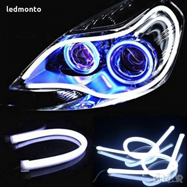 Кола 45см гъвкава течаща кола DRL мигач ангелско око Бяла кехлибарена дневна светлина дневна светлина фара LED