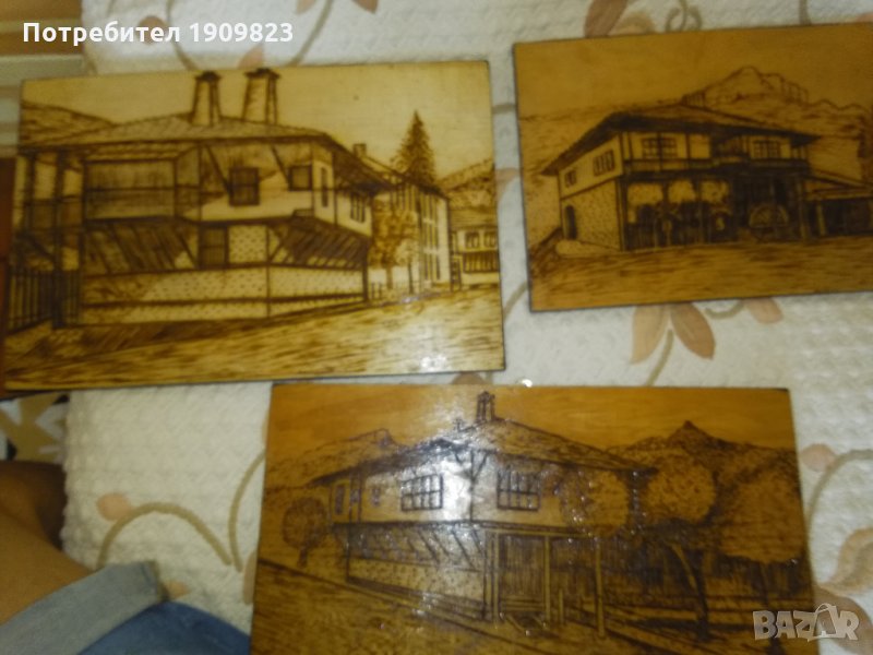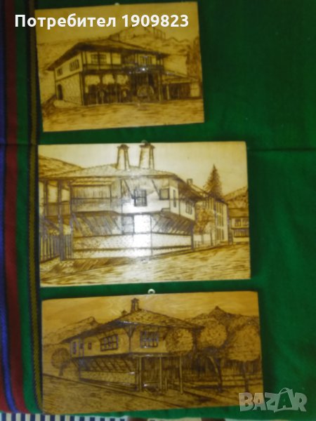 Три картини рисувани с пирограф върху дърво 31/23см. 40/21см. 40 /27см подписани