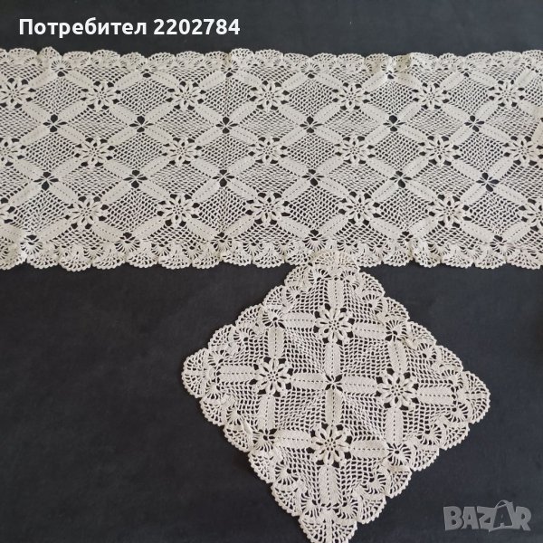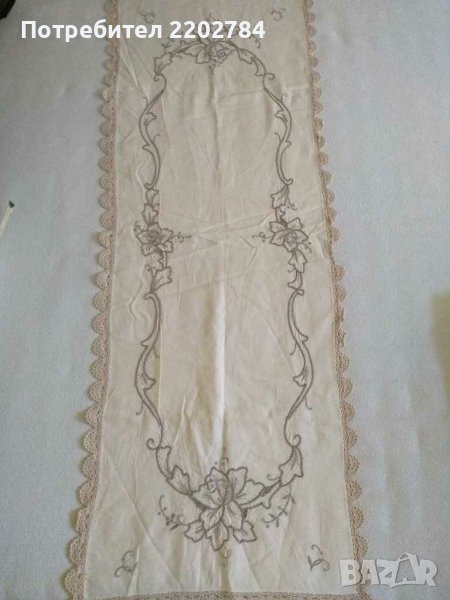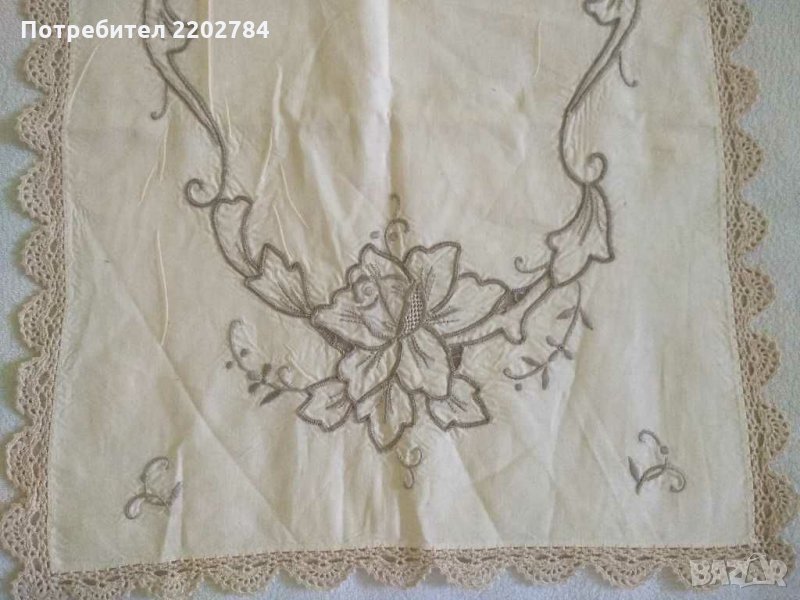 Второто е продълговато, комбинация от бродерия и фина памучна дантела в екрю.Дължина 100см.