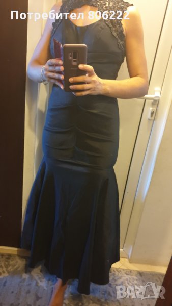 Няма следи от носенето. Роклята е та известа Usa фирма за официални рокли. Има вградени подплънки, разтегливост. Страхотен модел, като русалка. Последната снимка е на друга рокля, но да покажа модела, от бюста надолу е същия, с този набор.