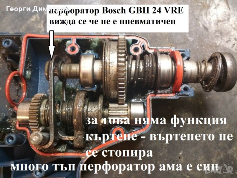 Всичко му работи - тестван е. Оригинал японски - произведен е 2001г. Това е железна машина от към механика и електро. И е пневматичен - това е много важно. Дал съм снимки за пневматичен и механичен перфоратор - механичните са пълен таш. к. Тази машина няма нищо общо с тъпите Бошовски механични перфоратори от този клас, при които натискаш като откачен, това е истински перфоратор, а става и за къртене.