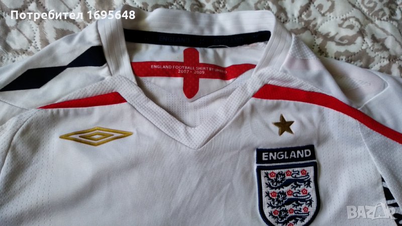 Оригинална официална тениска на английския национален отбор по футбол за 2007-2009г. Много приятна дишаща материя с climate control технология. Изработена е от 87% полиестер и 13% памук. Размера детски LB за 11 - 12 годишно дете до 152/165см височина. Отговаря на XS мъжки размер.