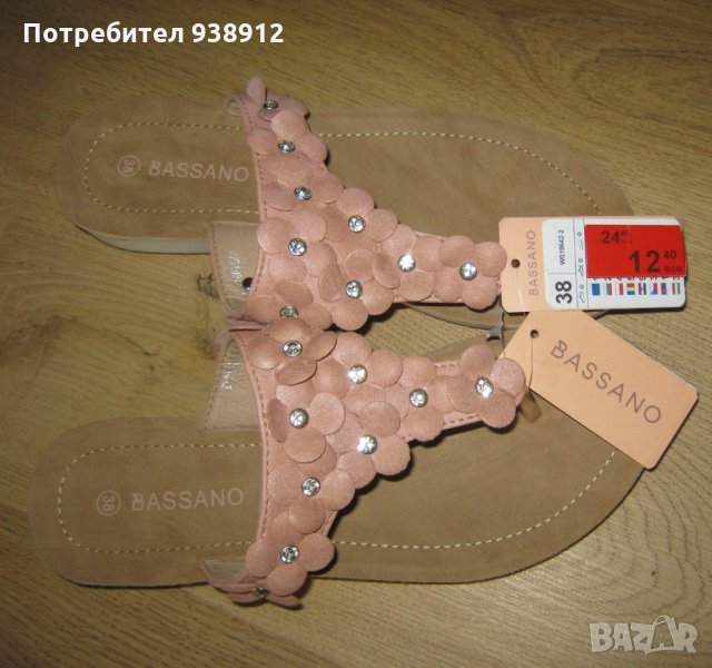 Нови чехли Басано в розово, размер 38. Чехлите са леко повдигнати.