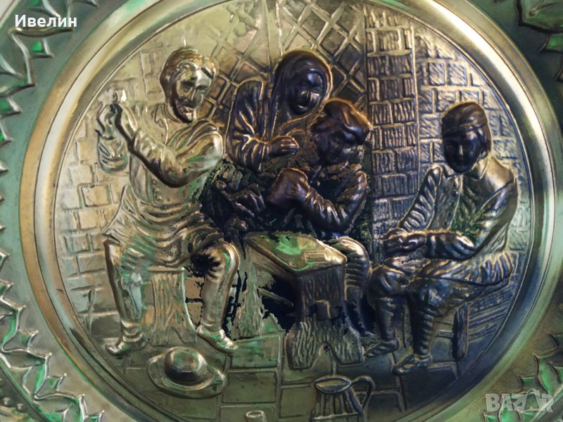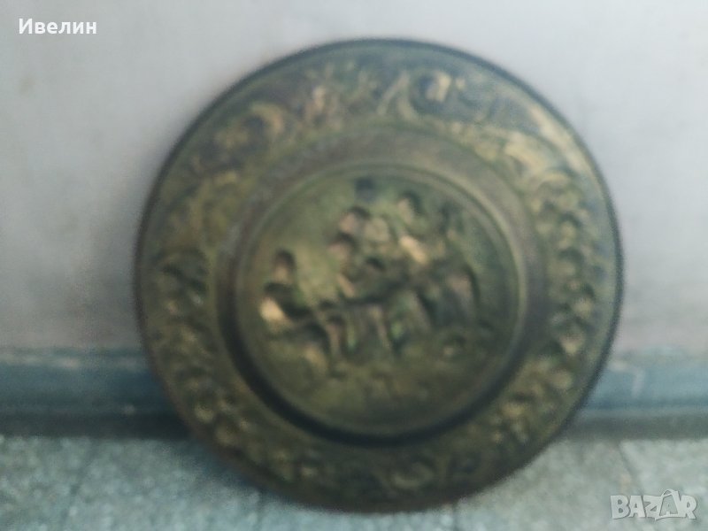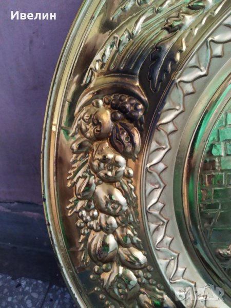 барокова чиния за декорация от месинг с диаметър 54см.внос от франция.състояние видно на снимките.