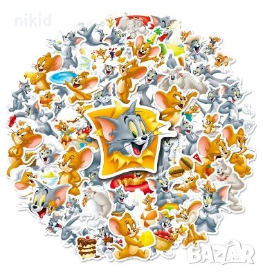 50 бр Том и Джери самозалепващи лепенки стикери за украса декор картонена торта и др декор → Обява 29921785