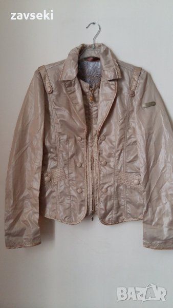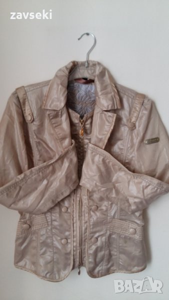 3. Лъскаво Бежово късо яке Geospirit -подходящо за дънки или подходящ тип рокля. Бързо съхне. Размер Л, цена - 18 лв.